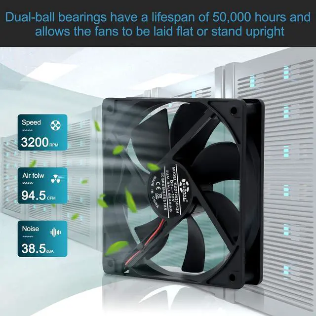 Long Service Life: Dual-ball bearings have a lifespan of 50, 000 hours and allows the fans to be laid flat or stand upright