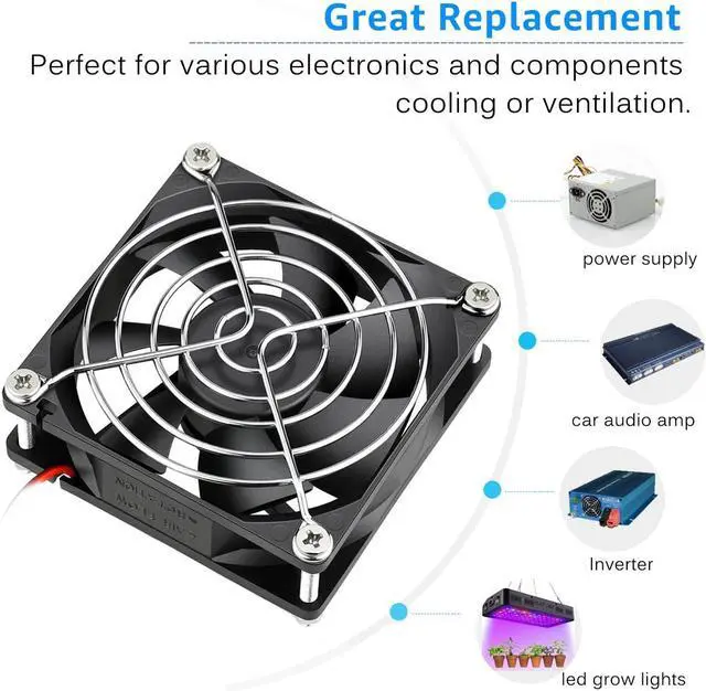 Wide ApplicationThis 80mm high speed fan can be used for cooling / ventilation in CNC Controller Box, Car Audio Amplifier, Inverter, Power Supply, LED Grow Lights, Battery Box, Vivarium, etc.