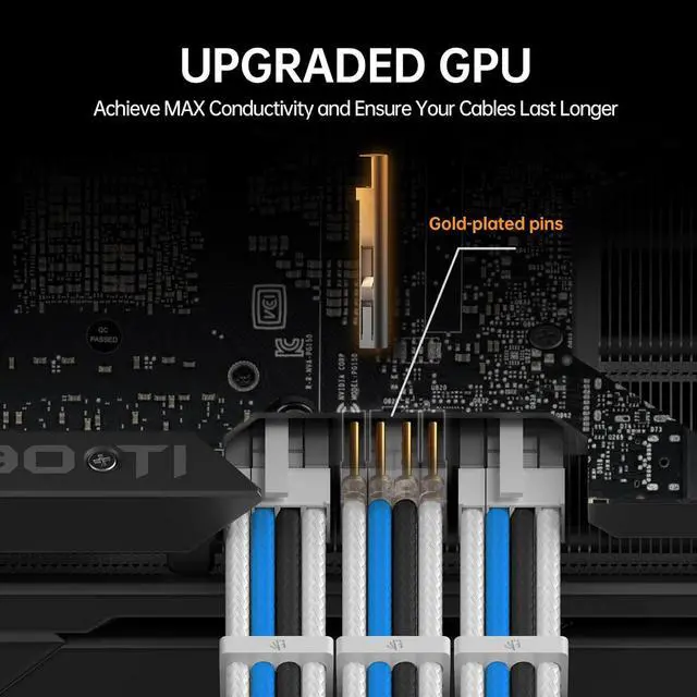 High Gold-Plated TerminalsThe connectors of the GPU cable are designed with a unique gold port for greater durability and can withstand daily wear. The life is 12 times longer than ordinary gpu power supply cable and can withstand over 15000 bends. Fit most of graphics cards (not for 4080) on the market.