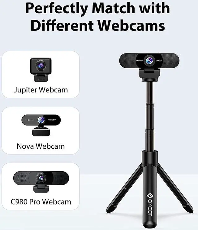 Stable and Durable: Made of the latest silicone materials. When you use a webcam without a tripod, you only can use your hands to hold it or clip it to a computer screen, but they are all not stable as the tripod. The tripod offers maximum stability for your devices and helps you to take more clear photos. But not applicable for EMEET C950 Webcam.