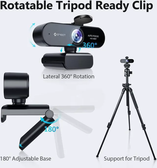 [Small and Exquisite: Portable and Suitable for All] The emeet Nova video camera is very light and compact. It' s perfect to buy a small portable 1080p webcam for business travel or vacation. Although the emeet Nova pc webcam 1080P is very small, it has all the functions that a camera for computer should have. The flexible clip that can easily unfold 180 ° is suitable for all displays, and the screw design at the bottom is especially suitable for tripods.