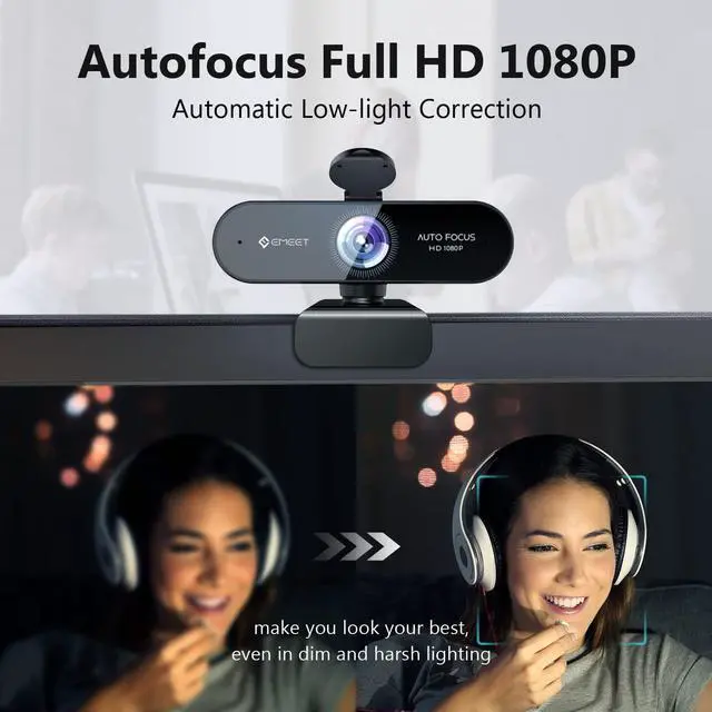 Shooting: Streaming webcam with 96° Autofocus Lens&Privacy Cover] The autofocus lens of the emeet web cam allows you to move freely around without worrying about out of focus blur. 96° wide-angle lens can capture more people at the same distance without distortion. 1 layer anti-glare glasses and 4 layer plastic lens delivers sharp, smooth video for Skype chats and YouTube recordings. The usb camera for computer privacy cover design can be disassembled to meet your privacy protection.