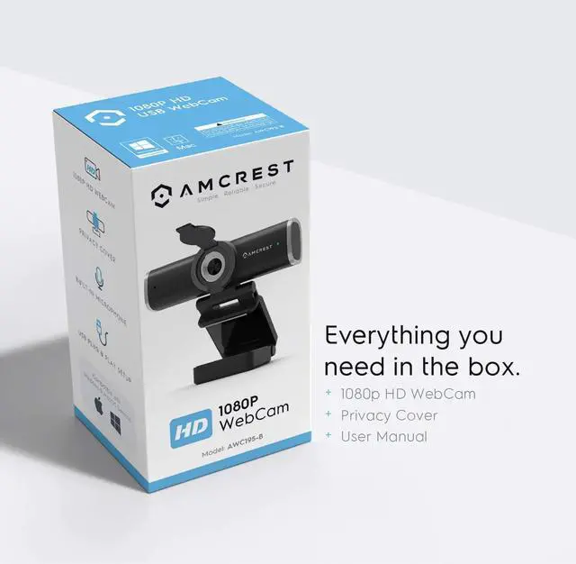 The Amcrest 1080p HD Webcam comes with a Privacy Cover, the privacy covers your webcam when not in use, and prevents web hackers from spying on you. Provides security, privacy, and ease of mind.