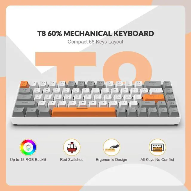 Portable 65% Mechanical KeyboardConsist of a Ultra compact 68 key layout, charming color match keycaps, and detachable custom C to A USB cable with metal aviator, ZIYOU LANG T8 keyboard is crafted to maximize your workspace and enhance your productivity, small size, lightweight, perfect choice for game, daily use or business trip, funny color theme, no boring at all, also each keycap can be removable, you can DIY with your own idea.