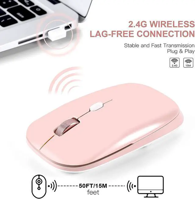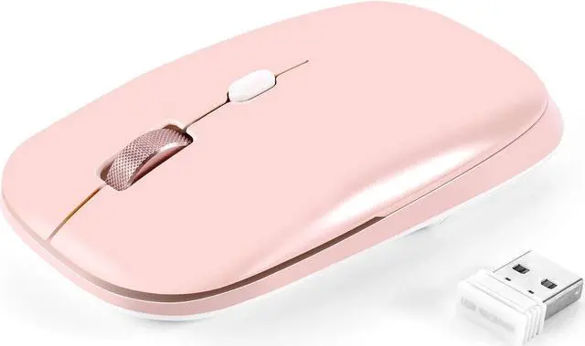 Maximum Hand-Feeling The wireless mouse size is only 4.3 x 2.5 x 1.1 inches (length x width x height), slim wireless mice shape, sweat-resistant and skin-friendly finish are for maximum comfort and support. The thoughtful ring and little finger rest provide extra comfort. The sturdy scroll wheel with metal makes sure that your hand will not slip when scrolling.