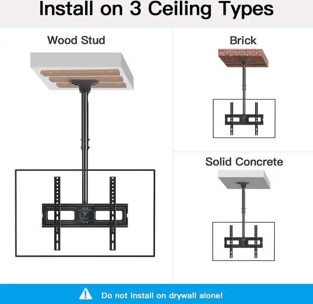 HEIGHT ADJUSTMENT: This ceiling TV mount includes a mounting template for easier installation. The pole extends 19.69 to 29.61 from the ceiling to the TV plate to provide better viewing angles and flexibility.