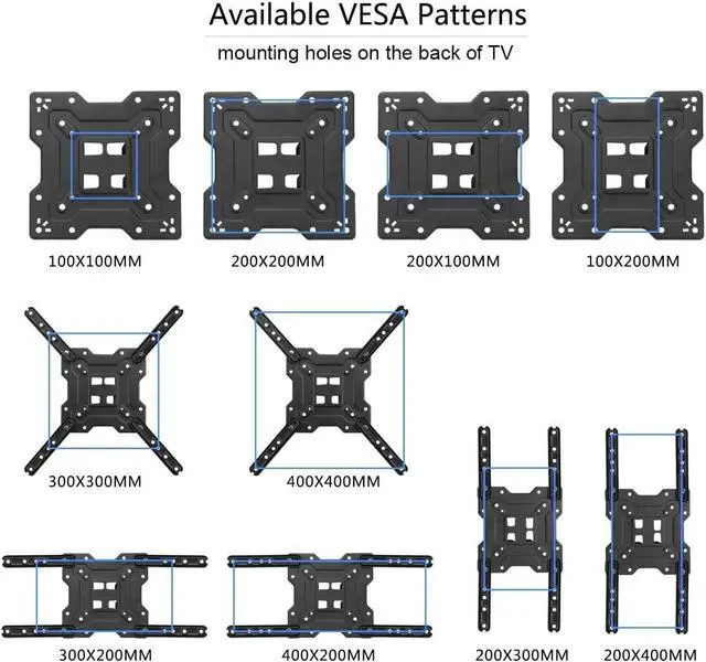 Compatibility - Hold most 23-55" TVs up to 55lbs, with max 400x400mm backside mounting holes.