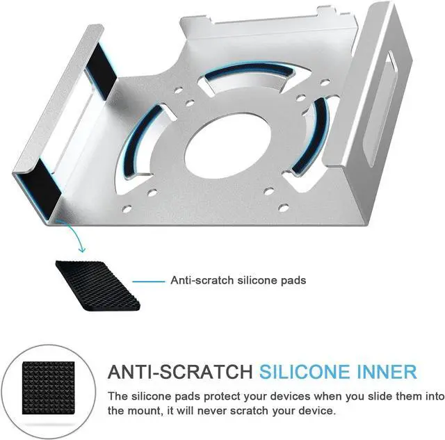 SAVE SPACE ON DESK: This is a sturdy mount, that will easily hold the your device either on a wall, under a desk or back of monitor, which freed up space on your desk, add to aesthetics of the whole space.