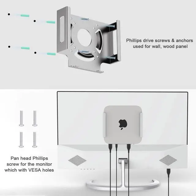 COMPATIBLE: It is perfectly compatible with Apple Mac mini 2011, 2012, 2014, 2018, 2020 M1, 2023 M2, Compatible VESA 75mm & 100mm. M4 Screws, drywall anchors included.