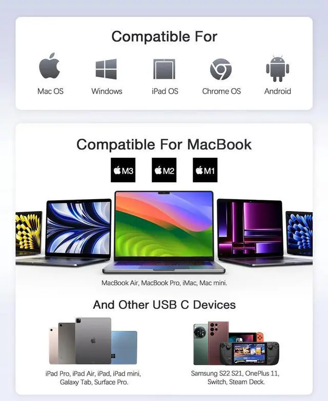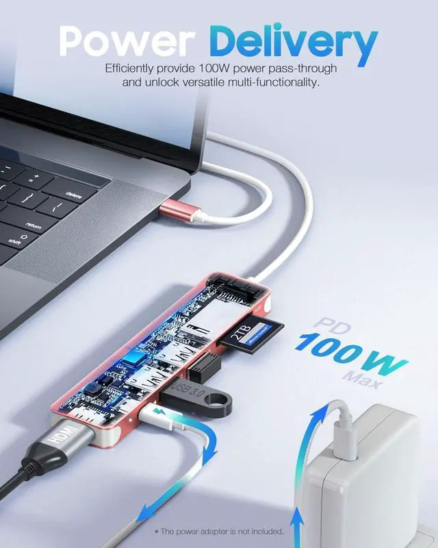 100W Power Delivery Supported: The USB C Hub supports a 100W USB C pass-through charging, ideal for MacBook Pro/Air or and other USB c devices, your primary choice of USB C Hub.