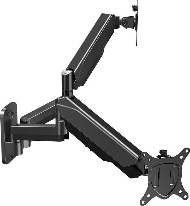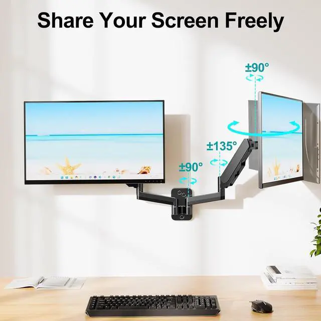 Most Advanced Gas Spring System - This monitor wall mounts for 2 monitors is built for thousands of movement by passing 10000-cycle tests, which achieves flexibility and stability than traditional mechanical spring. It can be adjusted to the weight of your monitor creating a suspended free-float effect. Please adjust it according to your monitor weight before use.