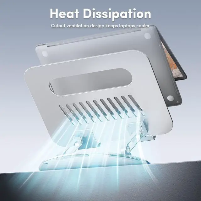 ^^ Heat Dissipation: The laptop stand panel is cutout to enhance air circulation for optimal heat dissipation and to prevent the laptop from overheating. Anti-slip silicone protects your laptop from scratches and slips and keeps it stable.