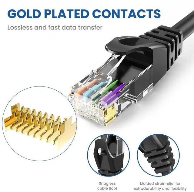 QUALITY CONTROL - Each Cat 6 internet cable 30 ft goes through rigorous testing to ensure a secure wired internet connection with exceptional speed and reliability ^^ PERFORMANCE -High performance Cat6 ethernet patch cables are designed with extremely well-matched components for outstanding uniform impedance and very low return loss, providing lower crosstalk, and a higher signal-to-noise ratio; They support frequencies of up to 500 MHz and are suitable for high-speed 10GBASE-T internet connection for LAN network applications such as PCs, servers, printers, routers, switch boxes, and more, while remaining fully backward compatible with your existing network ^^ CERTIFICATION - Cat6 Ethernet cable with CM grade PVC jacket complies with TIA/EIA 568-C.