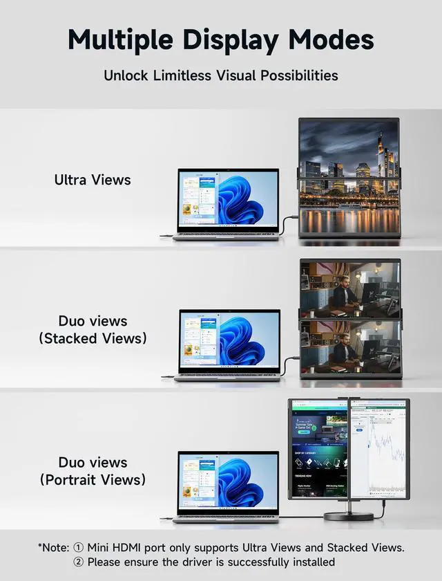 [(Innovative and Practical)] The JSAUX FlipGo dual stacked portable monitor is designed specifically for laptops. FlipGo won the 2024 iF Design Award and Red Dot Design Award. It supports Windows and macOS, offering a triple-screen workstation to boost productivity by up to 300%. It is ideal for users seeking an economical display solution.
