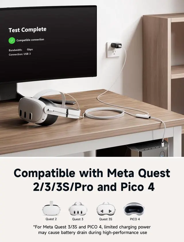 Charging While Playing: JSAUX CD0044 Play All Day Link Cable No need for additional mobile batteries, compatible with Meta Quest 3 Quest 2/Pro, Pico