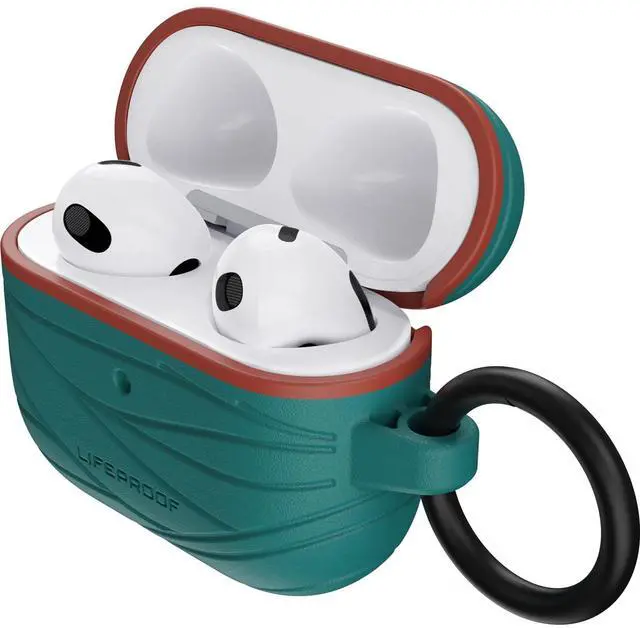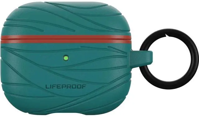 Soft touch Apple AirPods (3rd Gen) case with proven LifeProof protection that guards against drops, scratches and scuffs. Slide your Apple AirPods (3rd Gen) into this colorful case that comes with an included carabiner for convenient portability.