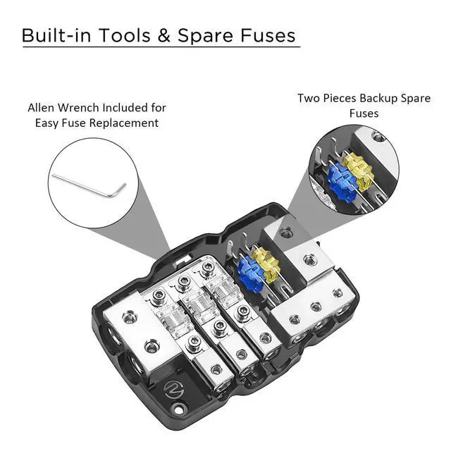 • Built-in Spare Fuses and Hex Wrench for Fuse ReplacementForged and Machined Brass Construction for Maximum Power Transfer
