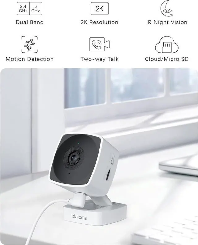 2K Ultra HD & Enhanced Night Vision & Two-Way Talk: Equipped with high-resolution 2K imaging and infrared night vision, this blurams indoor camera captures clear images even in complete darkness. Whether youre monitoring a room at night or just checking in, youll experience the detail and clarity you need for peace of mind. Equipped with Mic and speaker, you can interact with your baby, pet, family and visitors from anywhere.