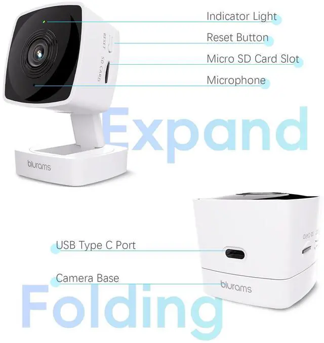 Placement Options: The compact, foldable design allows for easy placement anywhere in your home. Place it on a flat surface, mount it to the wall, or use the foldable base for quick repositioning, making it ideal for monitoring pets, kids, or rooms. ^^ Smart AI Detection & Instant Notifications: With advanced motion detection that distinguishes between people and pets, you receive real-time alerts tailored to your preferences (subscription needed for AI features). The blurams App sends instant notifications and short video clips to keep you updated on every important movement. ^^ Secure Storage Options for