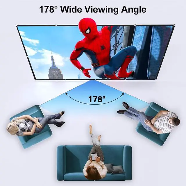 Viewing Angle Projector Screen: With a wide viewing angle of up to 178, this projector screen indoor allows you to enjoy a clear, bright, and unbiased movie from different angles, with no need to sit directly in front of the projector screen, perfect for family movie night. This double-sided outdoor movie screen also supports rear and front projection.