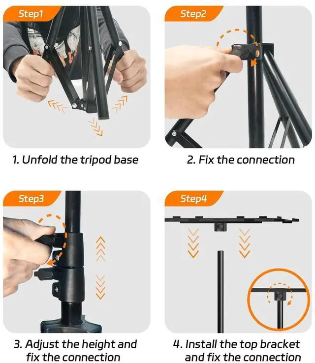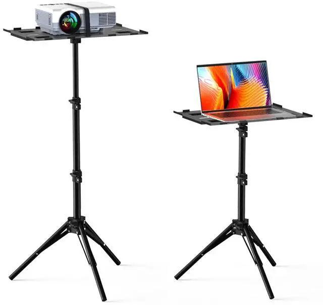 This tripod stand can handle heavy loads up to 15 lb, so not only a portable projector can fit, but also a large or standard device. ^^ [Easy to Carry] This laptop tripod stand features a compact and small footprint design. Its foldable frame makes it convenient for storage and carrying. And with a pre-installed structure, this projector tripod stand is easy to set up in minutes. You can try it as an outdoor movie tripod stand.