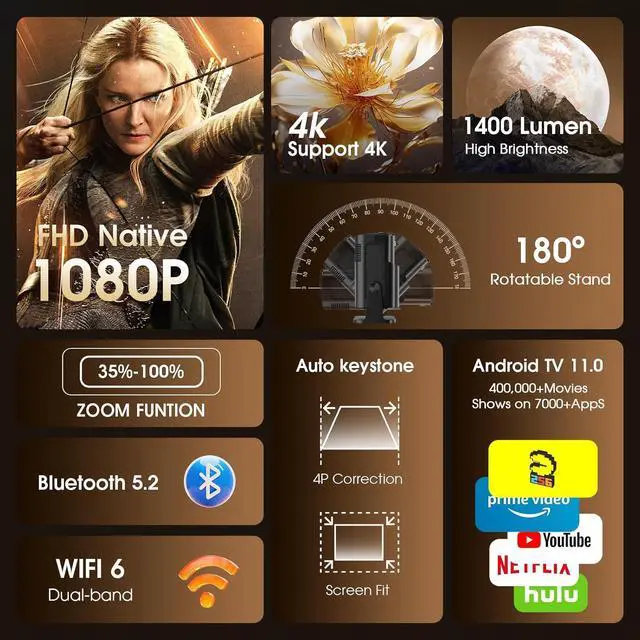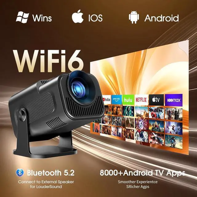 Two-way Bluetooth 5.2 ]: GM300 projector provides a powerful and versatile connection experience with dual-band WiFi 6 and Bluetooth, which is faster and less interference. GM300 supports two-way Bluetooth 5.2 audio transmission, which can easily connect wireless speakers, headphones or speakers to the projector to enhance audio quality. The built-in HIFI speaker can also provide cinema-level sound effects, allowing you and your family to create a home theater anytime, anywhere