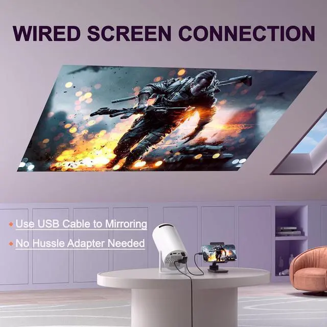 Easy Wired Connectivity for iOS Devices Easily mirror your iPhone or iPad with AMX100 portable projector using simple wired connectivity. Just plug in via USB, and youre ready to share photos, videos, or apps on the big screen.