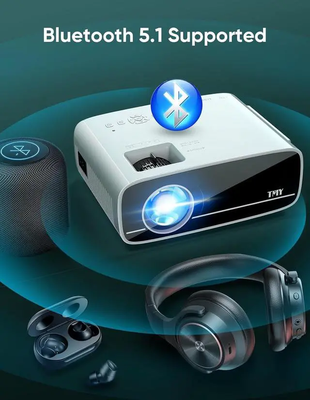 Bluetooth 5.1 Support & Upgraded SpeakerWith built-in upgraded speaker, you can enjoy a cinematic audio-visual experience without connecting external speakers. Also, this portable projector built-in Bluetooth 5.1 technology to make the audio synchronization faster and more stable. With this bluetooth projector, you can connect your ideal bluetooth speakers or headphones wirelessly at any time to get more wonderful sound, and you can truly create your own home theater.