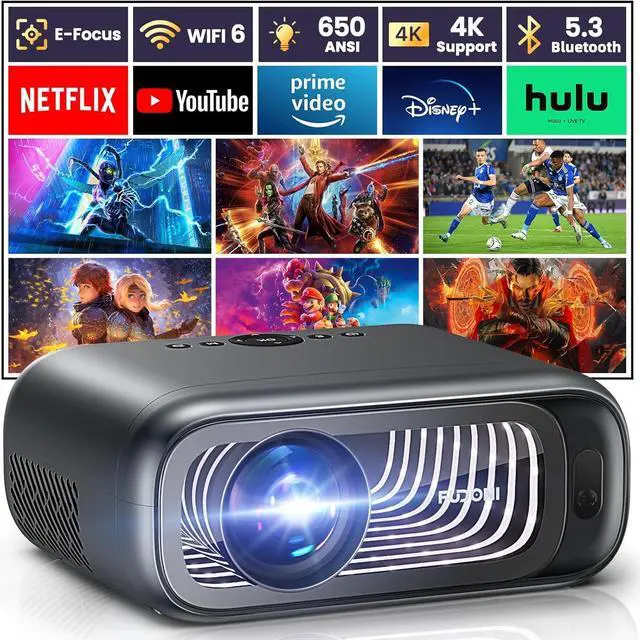 Immersive Visual ExperienceWith a 1920 x 1080 resolution, this home theater projector features native 1080P resolution and support for 4K movie playback, 650 ANSI brightness, 20000:1 high dynamic contrast ratio, highly restore the original image, provide clearer and more realistic colors, achieve perfect details for you, and enrich your private home theater experience. Equipped with AV/USB*2/HDMI*2/audio ports, it can easily connect Phone/PC/TV Stick/Switch