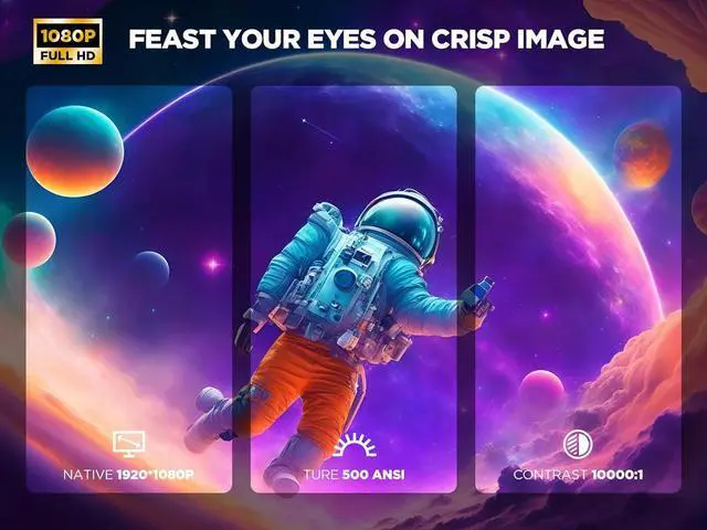 5G/ 2.4G Dual-Band WiFi 65G WiFi bluetooth projector boasts 5G/ 2.4G dual-band WiFi tech capable of receiving a WiFi signal on 2 frequencies at the same time, allows more flexibility and bandwidth to transmit smoother and speed faster. The phone projector with WiFi allows you wireless mirror or cast content from your compatible iOS iPhone with Airplay, Android Phone and Win10 laptop with Miracast to a giant projector screen. WiFi projectors will provide you with an immersive cinematic experience.