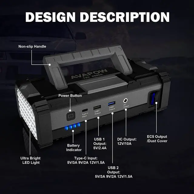 The AVAPOW A68 is suitable for all 12V vehicles, including cars, trucks, motorcycles, boats, RVs, tractors, ATVs, UTVs, lawnmowers, snowmobiles, and more.