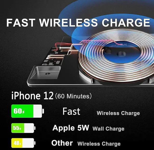 Upgrade Charging Panel - Equipped with Smart FOD (Foreign Object Detection) to prevent overheating, overvoltage, and short circuits. Made from durable ABS+PC material, it supports wireless charging with phone cases (less than 4mm thick). If charging fails, check for coins, IC cards, or other metals between the phone and charger.