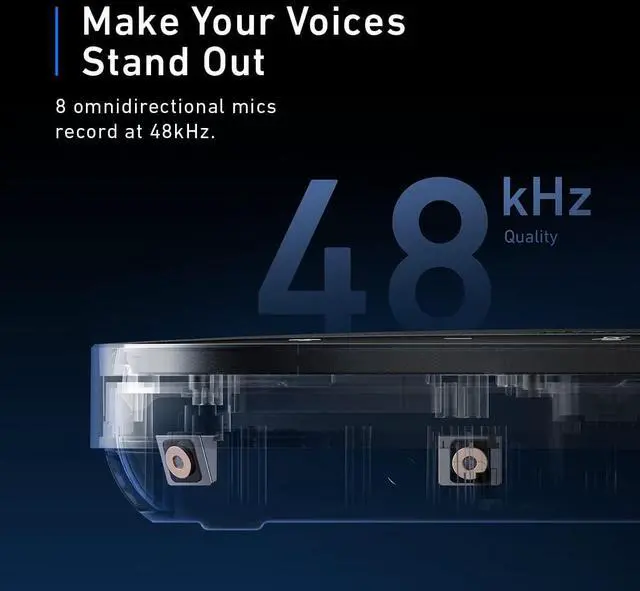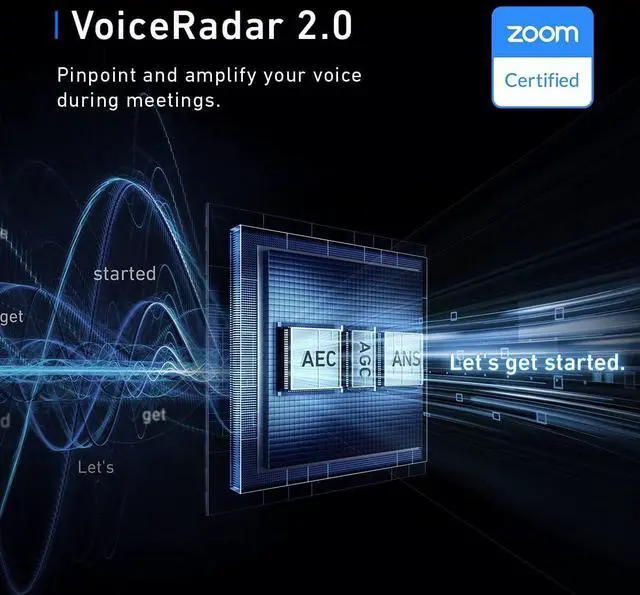 Exclusive VoiceRadar 2.0: Whether your meeting is an echoey conference room or a busy open area, AnkerWork's exclusive VoiceRadar 2.0 uses deep learning to isolate your voice from the background noise, ensuring that only your voice is what your clients or colleagues hear.