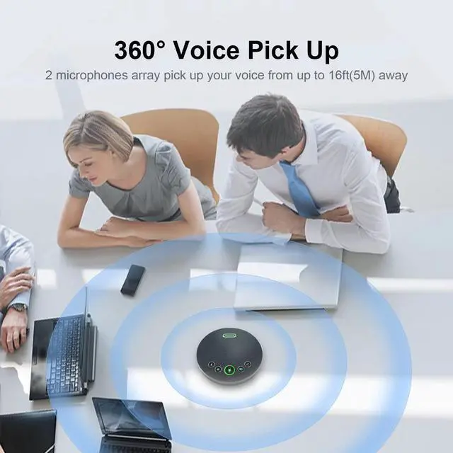 The Conference speakerphone could be connected via Wireless or Bluetooth or USB-C or headphone cable to your laptop or phone. The microphone is compatible with operating systems - Windows, MacOS, Linux and Android. With a built-in 2400mAh lithium battery, you can start efficient meetings anytime, anywhere. It is easy to get the meeting started by pressing the button.