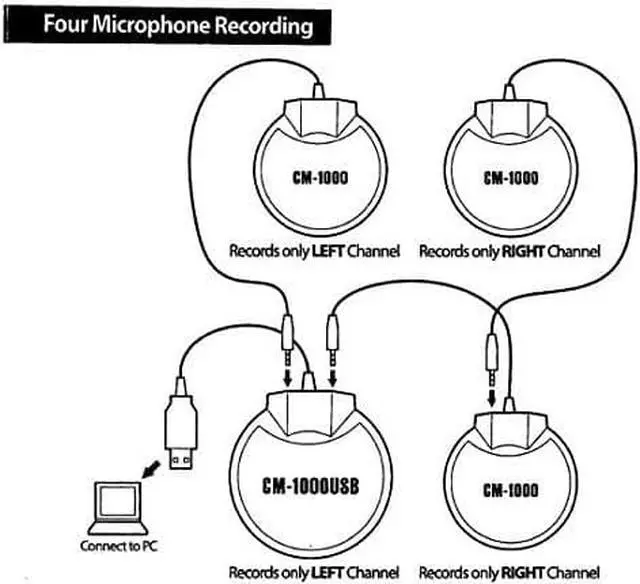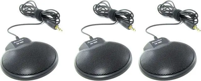 Low profile yet powerful recording capabilities, record large conference meeting in full high stereo quality, this kit include one USB conference microphone and 3 microphones with standard stereo audio plug. These microphones have a daisy chain compatibility which means that you can connect them to each other, check images for better understanding. Simply connect the USB microphone to your PC, and connect 1 microphone to left and 2 to the right and you will be able to capture every word in stereo quality. Each microphone has 5 feet cord for easier expanding and each microphone comes with its own pouch for easy storage.