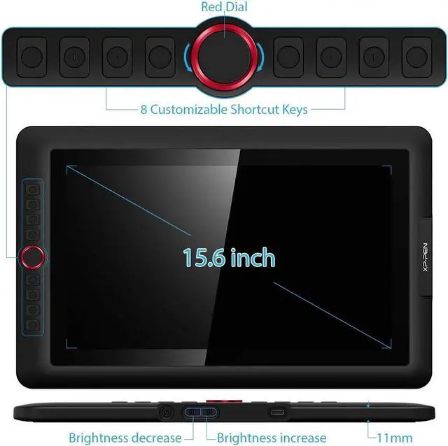 Sleek and smart designer: The Artist 15.6 Pro Drawing monitor features a slim 11 mm profile, and with an easily accessible smart screen-brightness button, you can easily adjust it to your preferred brightness for comfortable drawing