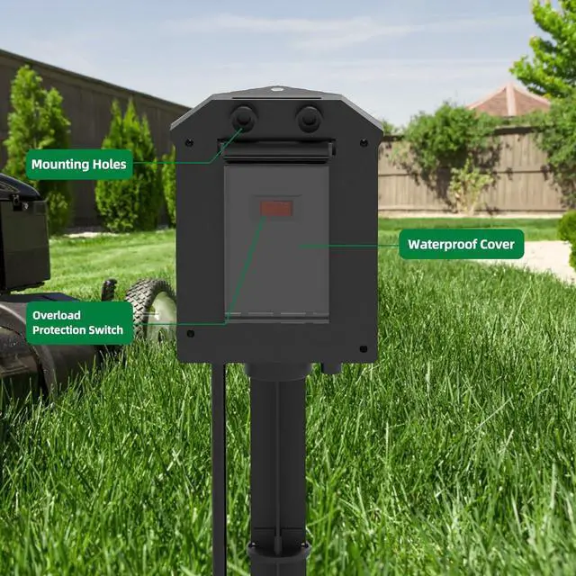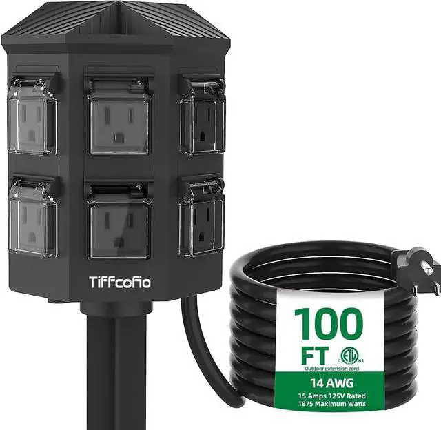 This heavy-duty outdoor extension cord with stake allows you to safely power devices anywhere in the yard or garden. Featuring a durable 14/3 gauge construction, this cord can handle the demands of power tools, string lights, and more. The cord is weather-resistant and safe for outdoor use, with an integrated grounding plug that protects connected devices from surges. To secure the cord in place, simply push the stake into the ground and loop the cord through. This anchoring system keeps everything neatly in place without tangling. At 100 feet in length, the cord reaches where you need power without looking unkempt. Great for camping, construction sites, or daily yard work - this extension cord makes outdoor electricity easy and convenient.