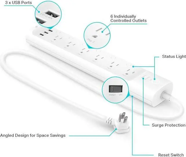 With independent control of 6 devices and extra USB ports to charge 3 others, the kasa smart Wi-Fi power strip is ideal for your family rooms, home office or small business, power up your office remotely and even your holiday lights. Remotely control each outlet with the kasa smart app or use voice commands with Alexa, Google assistant, or Microsoft cortana. Kasa app system requirement: iOS 10 or Android 4.4 or higher.