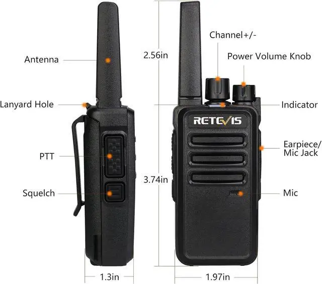 0-9 level squelch; clear transmission and reception of audio even in noisy places; provide clear and loud audio output; effectively reducing power consumption and extending the battery life