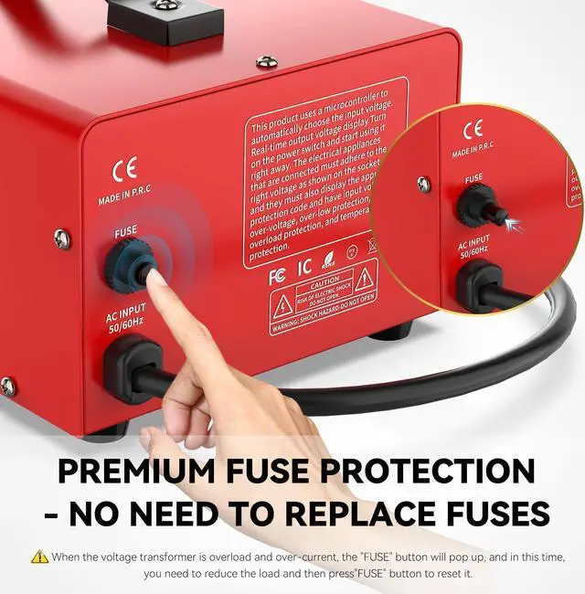 SAFE TO USE- Comes with resettable circuit breaker. Please press the "FUSE" button on the back of converter to restore the circuit when the converter shutdown due to over-current or over load.