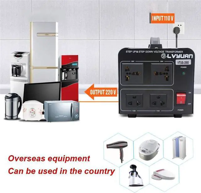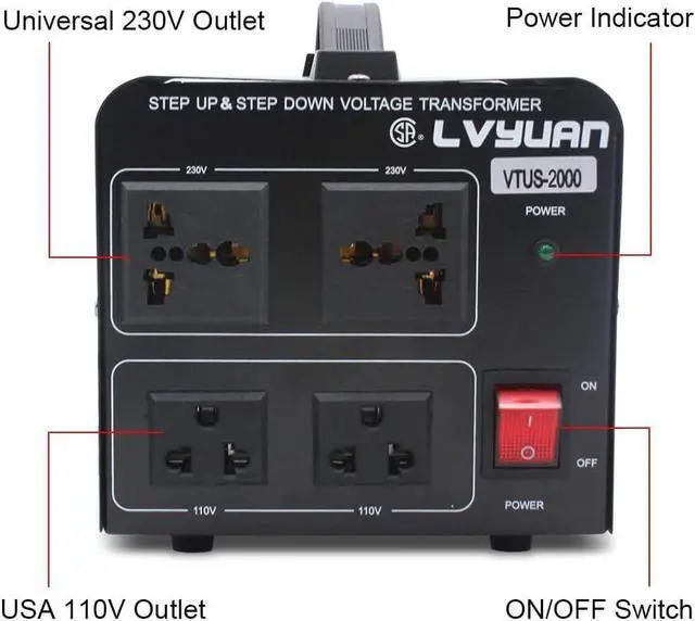 2000 Watts Step Up/Down Voltage Transformer Converter. Step Up Voltage from 110-120 Volts to 220-240 Volts. Step Down Voltage from 220-240 Volts to 110-120 Volts.