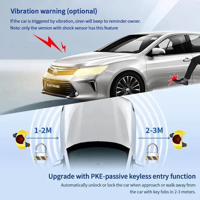 EASYGUARD Smart key RFID PKE Car Alarm system with PKE, touch password entry and shock sensor alarm