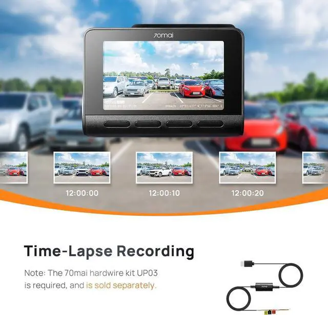 ADAS and Parking MonitorThe Advanced Driver Assistance System (ADAS) provides real-time alerts for front vehicle movement, lane departure, and potential hazards. The 24-hour parking surveillance and AI motion detection ensure your vehicle is monitored even when parked, automatically recording any suspicious activity. Time-lapse recording condenses hours of footage into a quick view, making it easier to review your journeys or any incidents. (Need hardwire kit UP03 or UP05, not included)