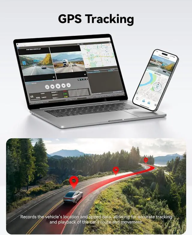 DASH CAM WITH GPS- This dash cam has a built-in GPS and records the driving route, real-time speed, location details, etc. You can track on google maps through the "Redtiger" App or our Windows and Mac GPSPlayer, which will provide further additional evidence if an accident occurs.
