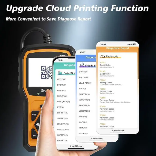DTC Lookup: Unlike older models that typically only have 3, 000-10, 000 DTCs, the ZM301 car code reader is equipped with a database of 50, 000+ DTCs. This substantial advantage enables the scanner to better diagnose and resolve vehicle faults, making it an excellent choice for replacing or upgrading existing car scanners.