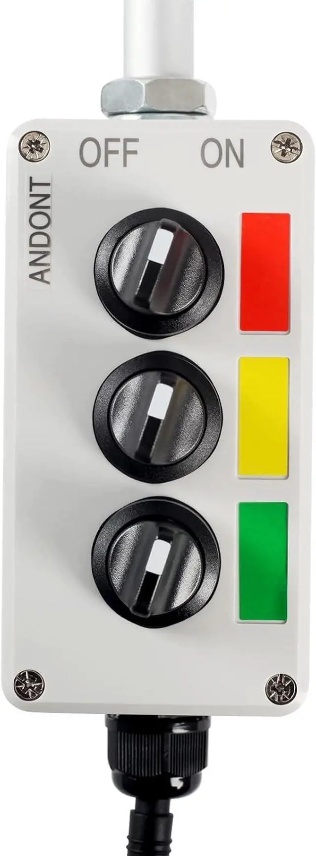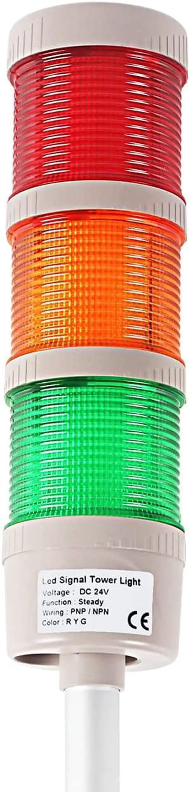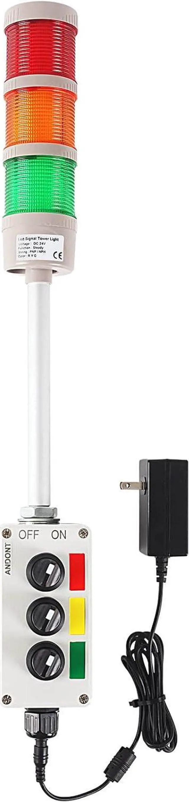 2.36 in Tower Stack Lights, 16 Red LEDs, 16 Yellow LEDs, 16 Green LEDs, 9-Inch Aluminum Pole, 2-Hole L-Bracket, 3 Industrial OFF/ON Selection Swithes, Control Box, 6-ft 2 pole USA plug AC-DC Reliable Green Industial Adapter