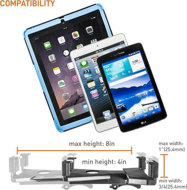 ADJUSTABLE - Each tablet holder rotates 360 degrees for optimal viewing positions. Tablets and the pole can be mounted in a vertical or horizontal position. Insert Tablet into holders horizontally and then rotate to desired viewing position. Clamps your tablet in a secure hold, but is easy to remove as needed.