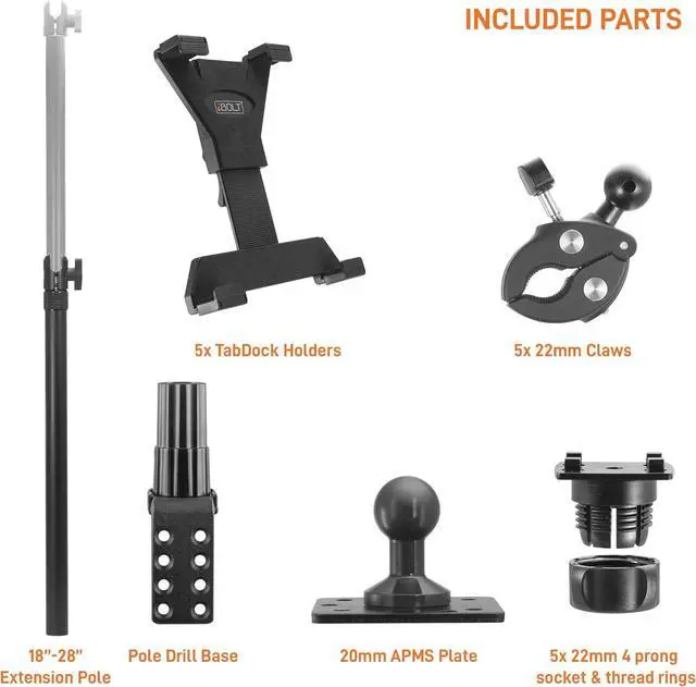 GREAT FOR BUSINESS OR PERSONAL USE - Works with most smooth surfaces, perfect for wall mounting and the Pole expands from 17.5 tall to 28.5 long. The TabDock Point of Purchase is great for business, homes, point of sale location, kiosk stands, displays.