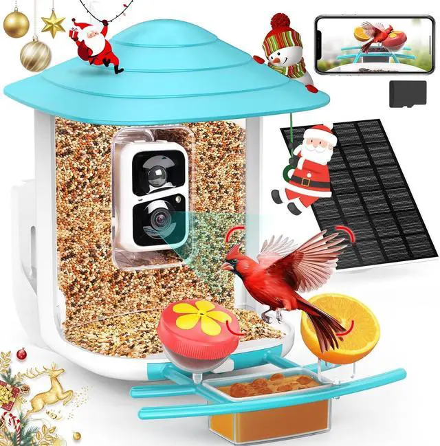 Extra add-ons: fruit fork, hummingbird feeder and jelly box. You can put different bird food to attract different types of birds. 1.8L large capacity container, no need to add bird food every week. The drainage design also ensures birds can get dry food