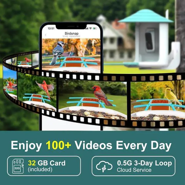 For All Weather, Non-Stop Solar PoweredThis bird camera for outside is IP65 weatherproof, protecting it under sunshine/wind/heavy rain/snow, etc. Suitable for all seasons and wathers. Adjustable solar panel with 9.8 ft cord provides non-stop power: full charge and then connecting to solar panel can last 6 months